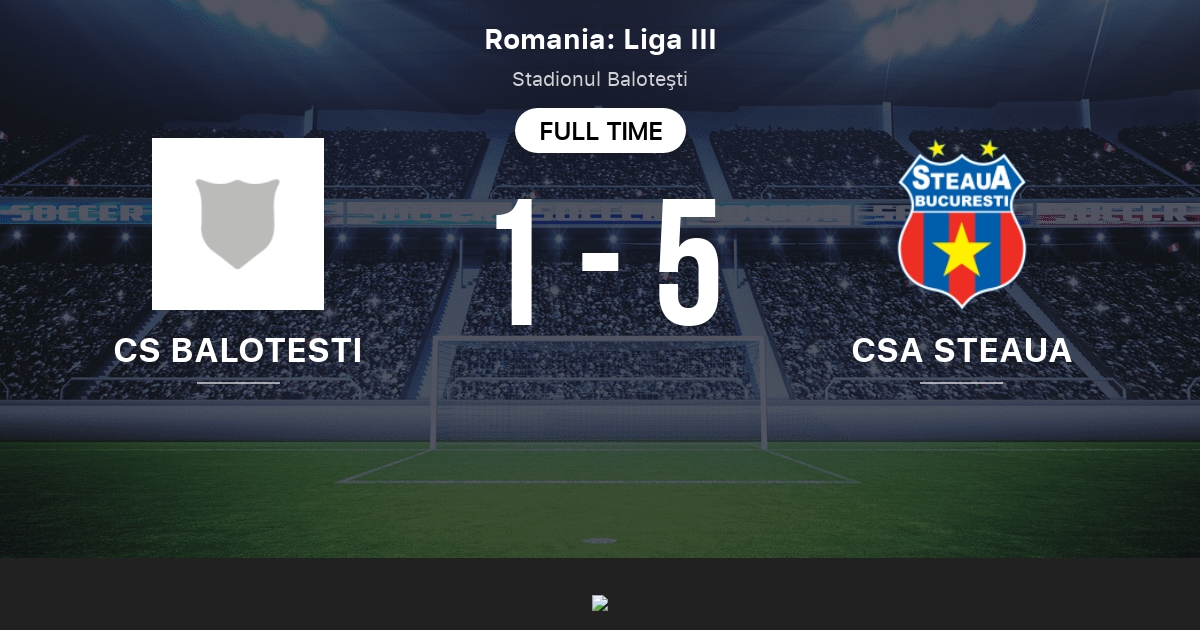 One-on-one comparison including the previous matches of the two soccer teams team results from previous meetings for both home and away games comparison of team stats and results in their individual leagues or top scorers and disciplinary actions for players in each team. CSA STEAUA 6-0 CS BALOTESTI Min 84. Browse now all CS Balotesti vs CSA Steaua Bucuresti betting odds and join SmartBets and customize your account to get the most out of it.