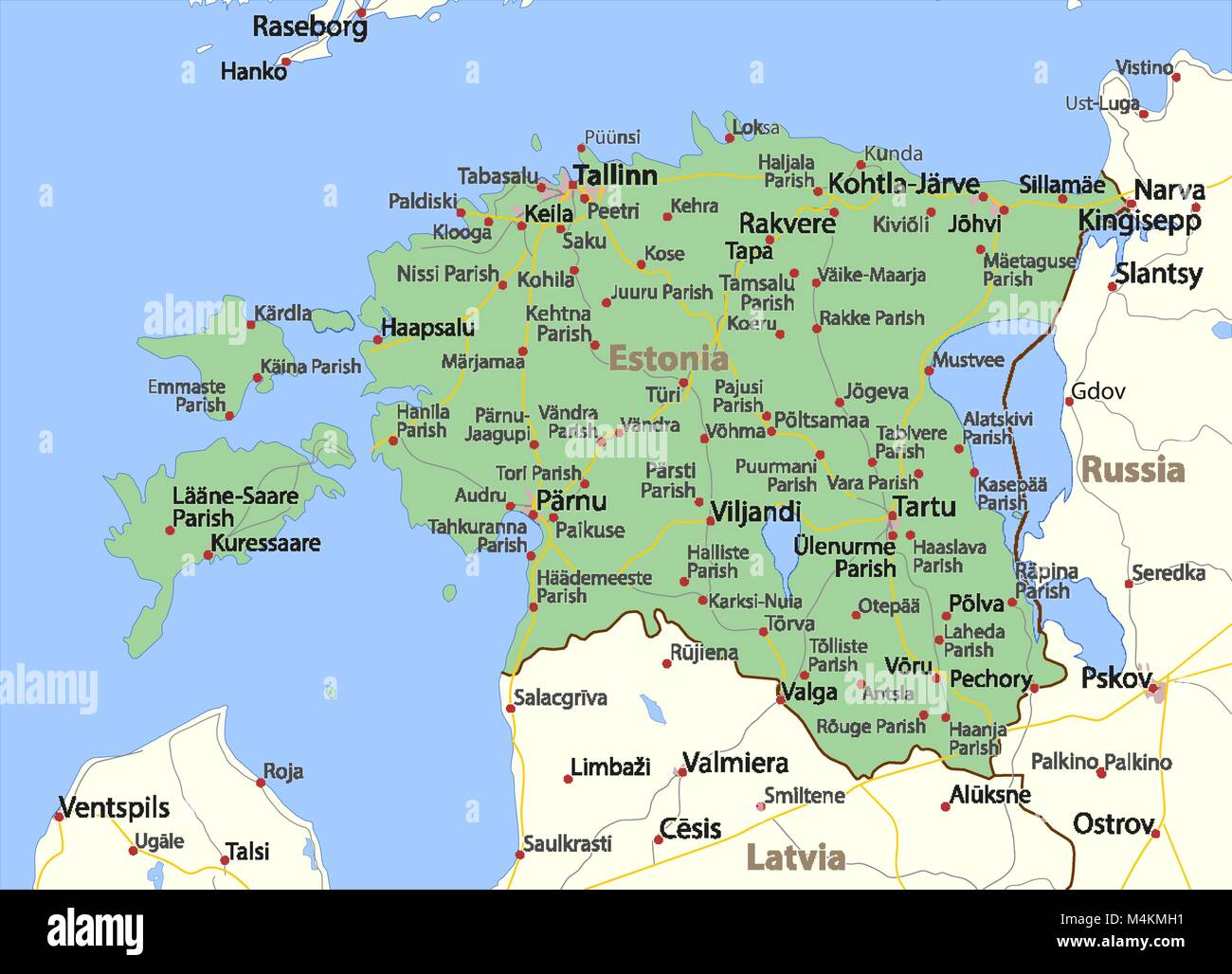 Karte Von Estland Zeigt Die Landergrenzen Stadtischen Gebieten Ortsnamen Und Strassen Beschriftungen In Englisch Wo Dies Moglich Ist Projektion Mercator Stock Vektorgrafik Alamy
