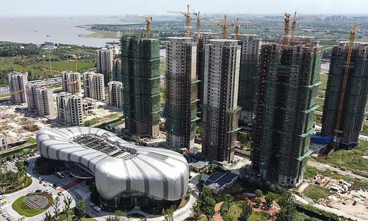 Damals schickten marode Immobilienkredite die Bank in die Insolvenz wodurch. Denn Evergrande verfügt über ein regelrechtes Geflecht von mehr als 200 Tochterkonzernen das weit über die Immobilienbranche hinausgeht. Ein Häuserkomplex von Evergrande im chinesischen Huaian.
