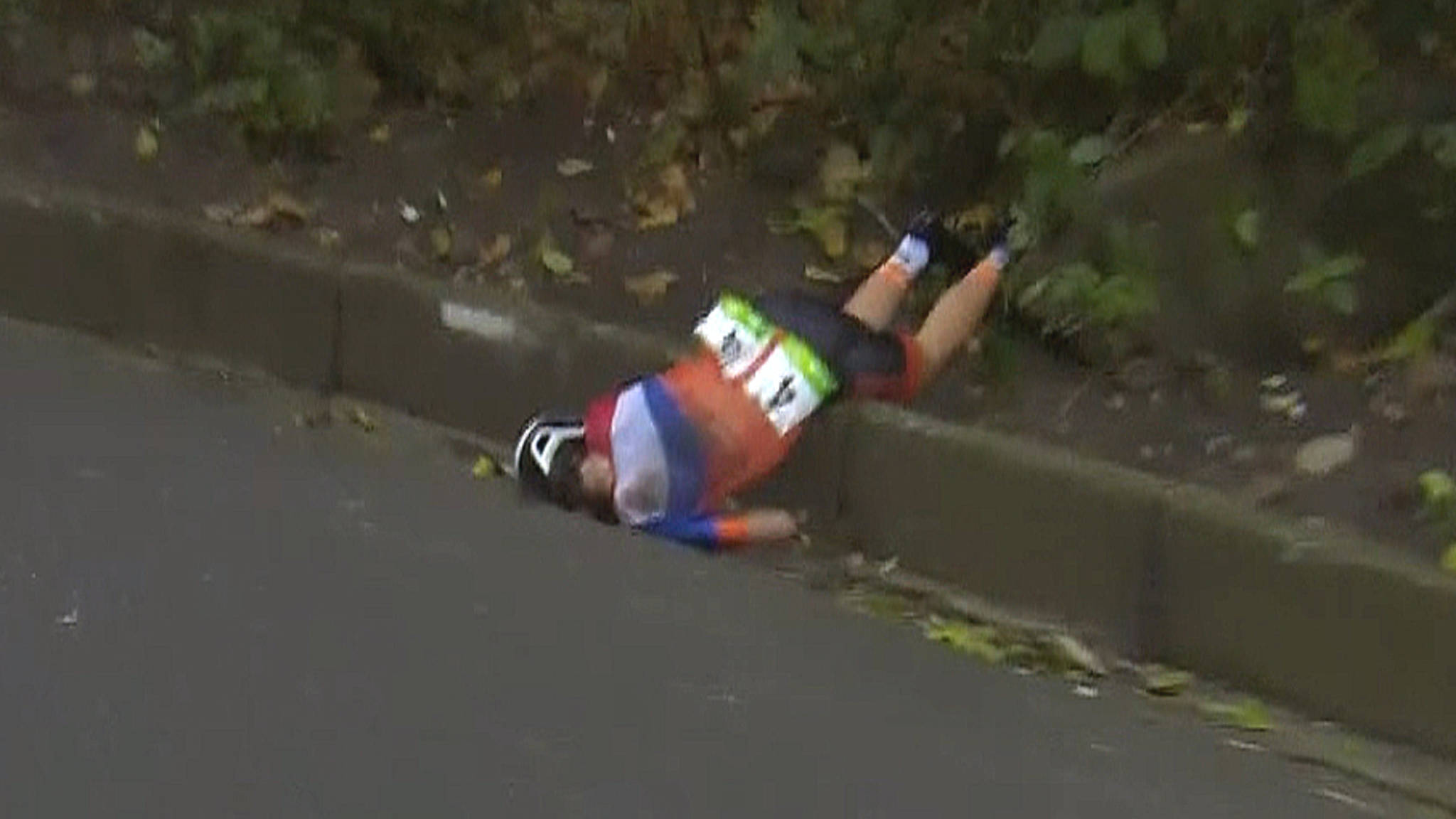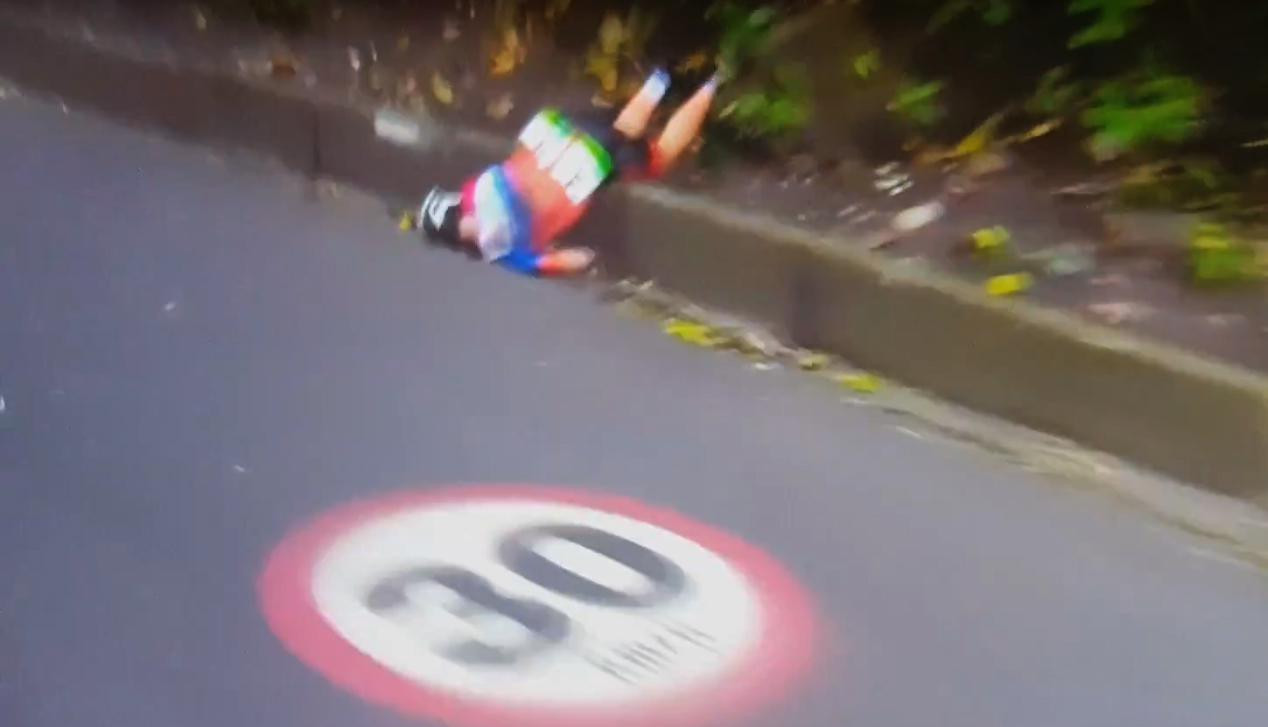 Val Annemiek van Vleuten gefilmd door toeschouwer. Annemiek van Vleuten crashes while leading Rio 2016 road race. 2016 Road RacePray for a speedy recovery------Please watch.